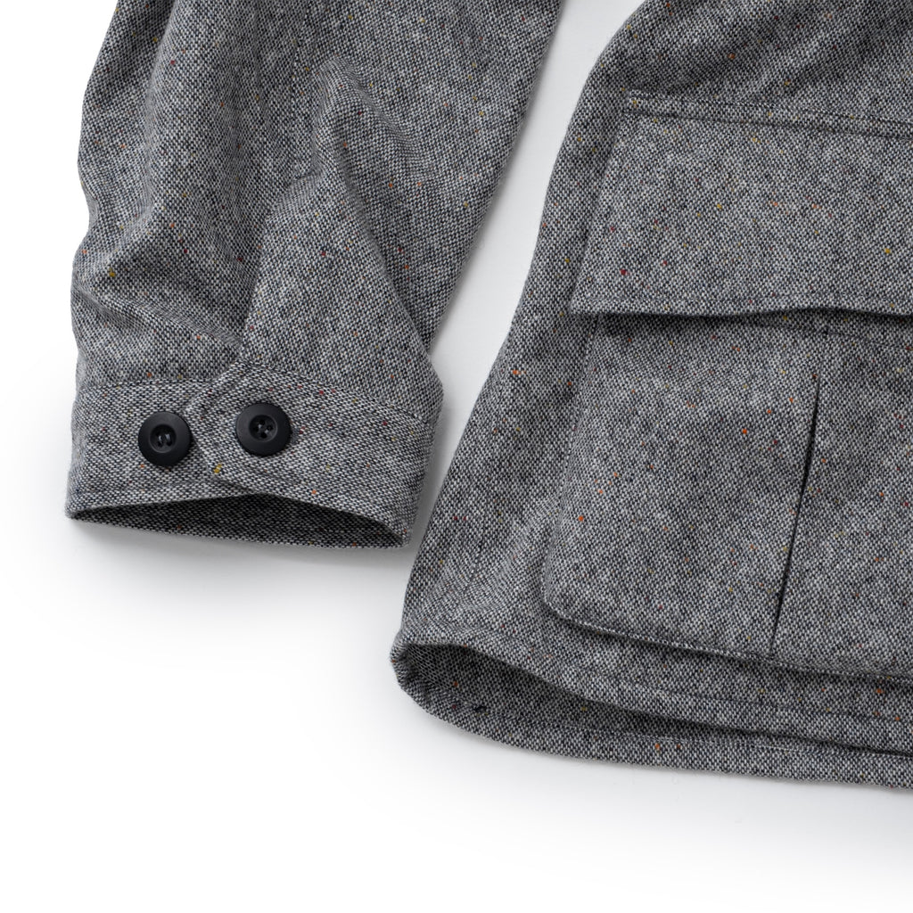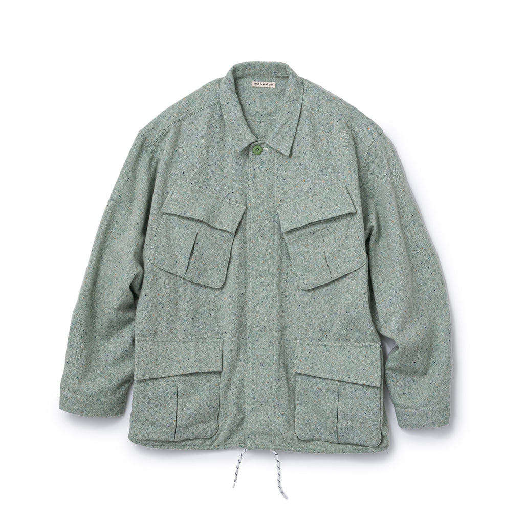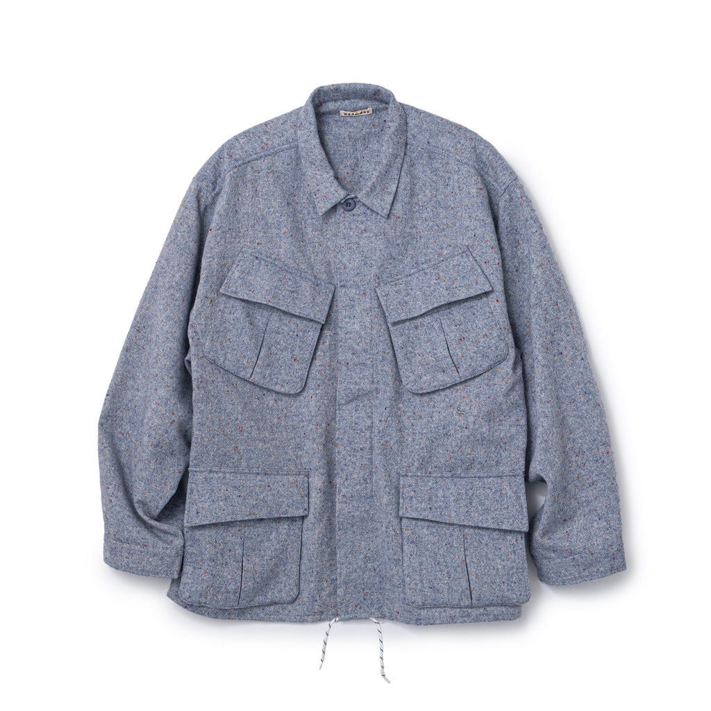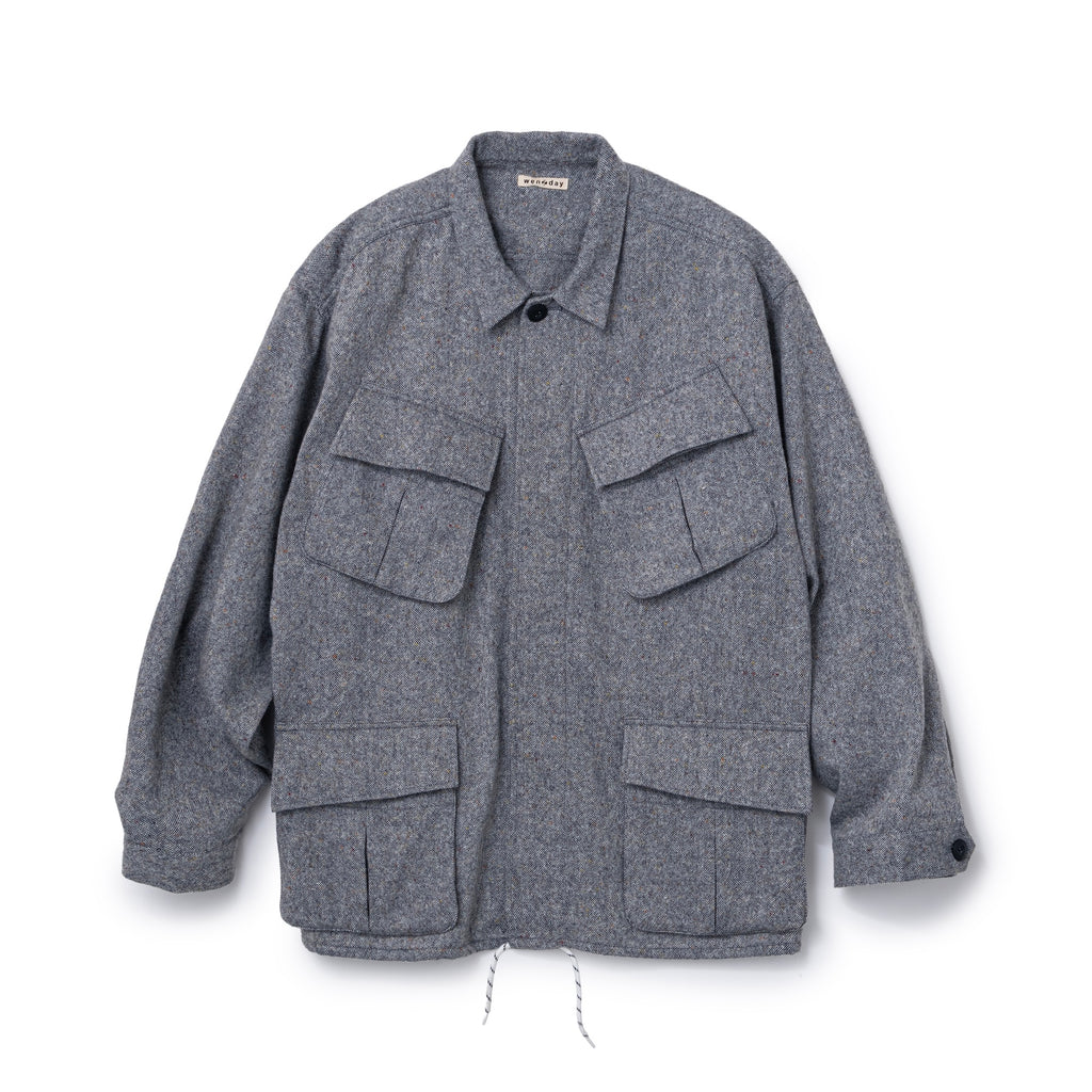 リサイクルウールのネップ糸を使用したツイード生地で作成したファティーグシャツジャケットです。